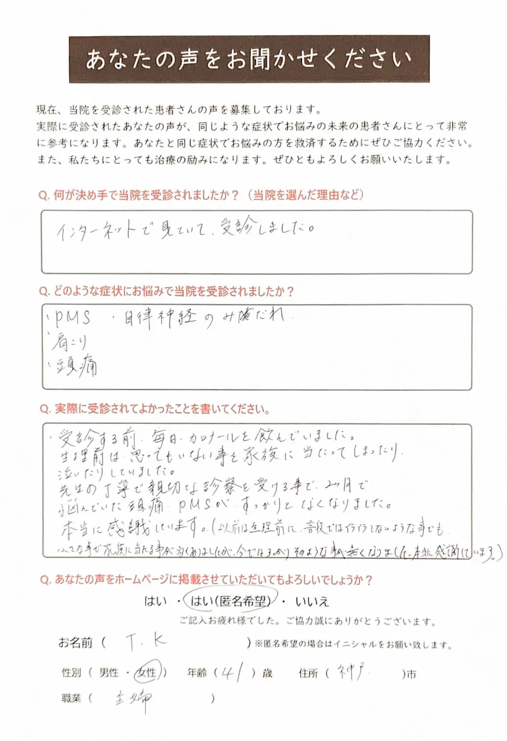 神戸市垂水区在住の55歳女性Tさんのアンケートの画像