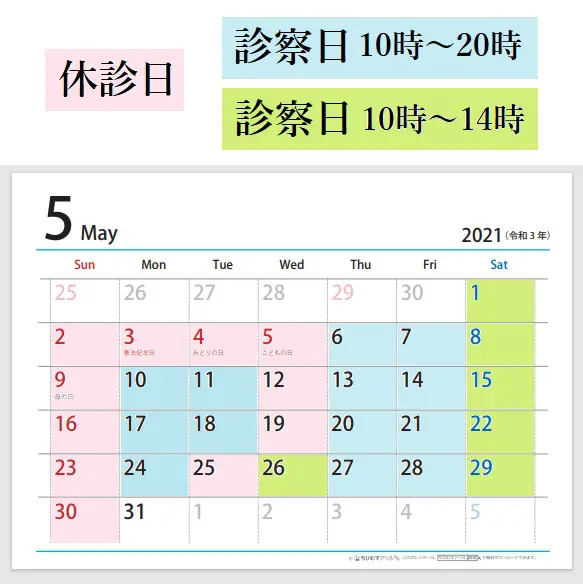 まず、GWは5月5日(水曜日)まで。5月6日(木曜日)から通常通り診察しております。